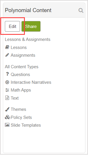 To delete a question, interactive narrative, Math App, or text from your Content Repository: