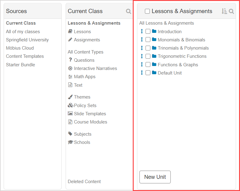 Navigate to the Lessons & Assignments folder within your Current Class Sources pane.