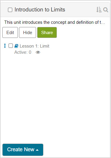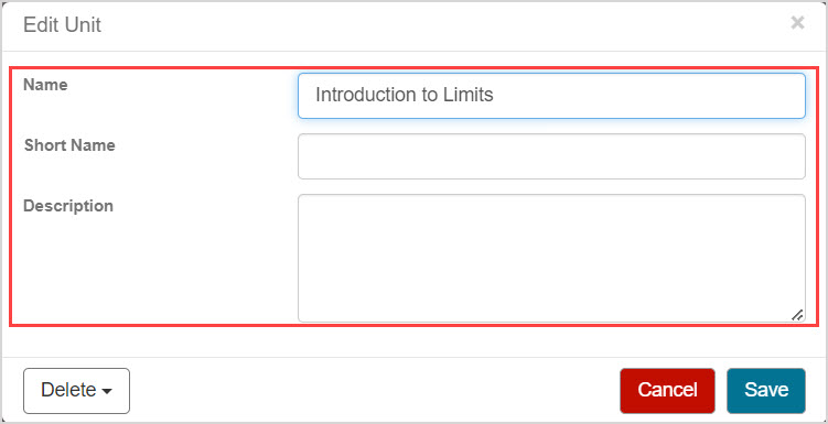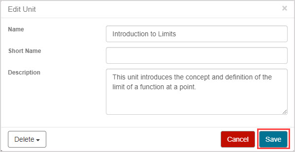 NOTE: The Description of the unit is visible to students on the Class Homepage when the unit is selected.