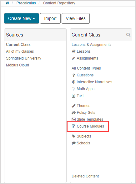 Click Content Repository on the Class Homepage.