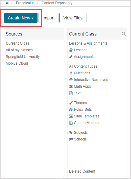 Click Create New from the main Content Repository menu.