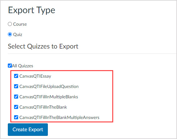 The QTI file format is a standard file format for questions that's supported by most Learning Management Systems (LMS).