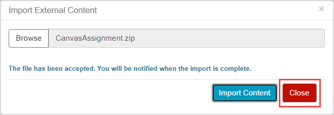 NOTE: No content will be imported if there is an error with one of the question formats or in converting the assignment. Check out Troubleshooting failed imports for help with interpreting the email notification and resolving a failed import.