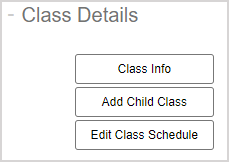 Class Info, Add Child Class and Edit Class Schedule buttons on the left of the Class Details pane.