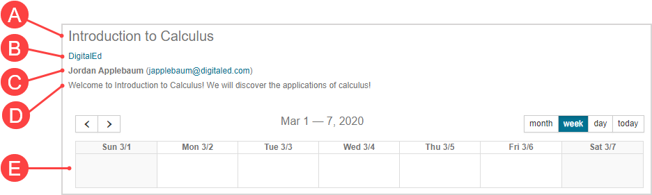 E.Class Calendar — A calendar that contains class events and class dates (check out Work with the calendars).