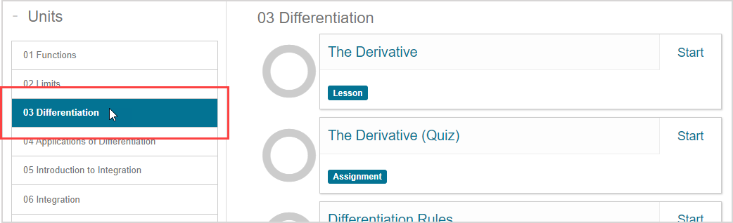 NOTE: The organization of your units on the Class Homepage is determined by how they are arranged in the Content Repository. Check out Understand the Content Repository.