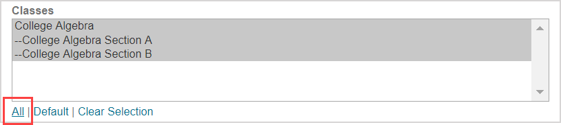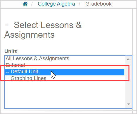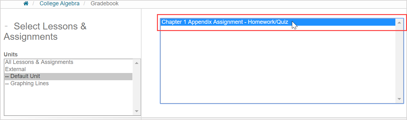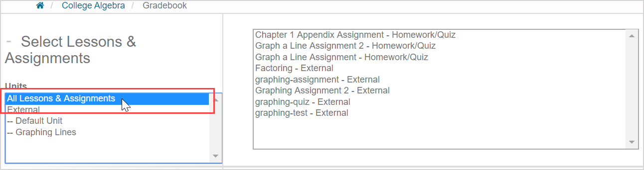 TIP: Select All Lessons & Assignments to display all of your class's activities in the list of available activities.