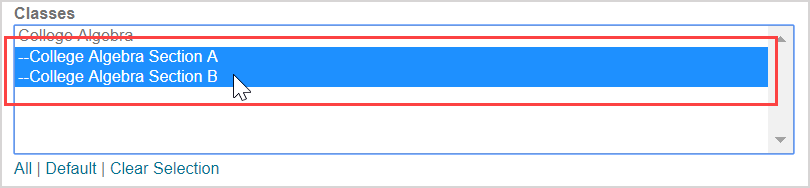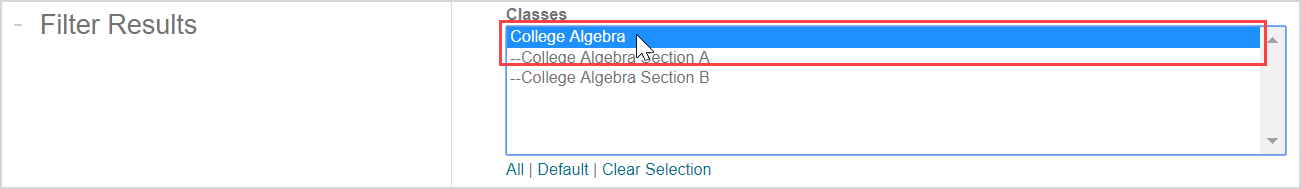 TIP: The parent class and all associated child classes will appear in the Classes list. You can select more than one class for viewing item statistics. Press Ctrl (