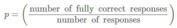 | p-Value | The ratio of the number of fully correct responses (i.e. where the normalized score is 1.0) to the total number of responses.