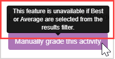 Hovering your cursor over the deactivated Manually grade this activity button will notify you of why the feature is unavailable.
