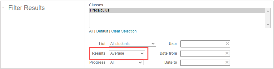 - The Results filter in the Filter Results pane is set to Average.