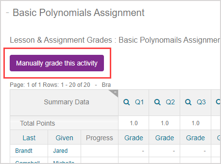TIP: Clicking on an activity name will also reveal access to the new Activity Grading View of the Grade Manager that you can use for manual grading. Check out Access the Activity Grading View.