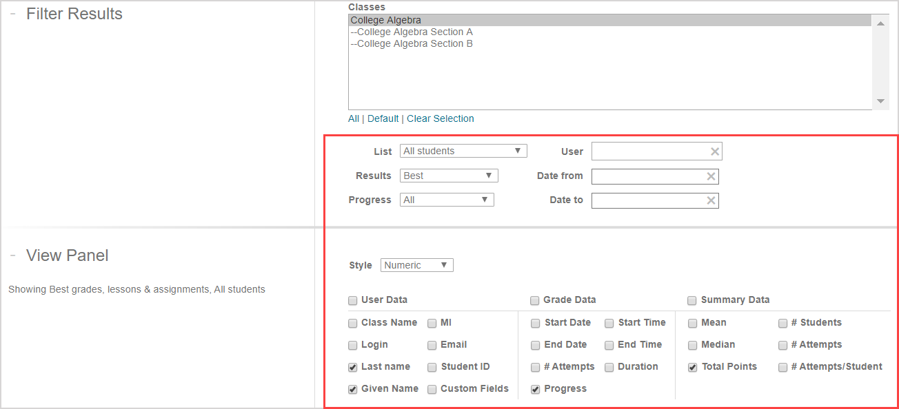 (Optional) Customize the data fields beyond the default settings that control what information is displayed in the results of your class grades search. Check out Use additional Gradebook search criteria.