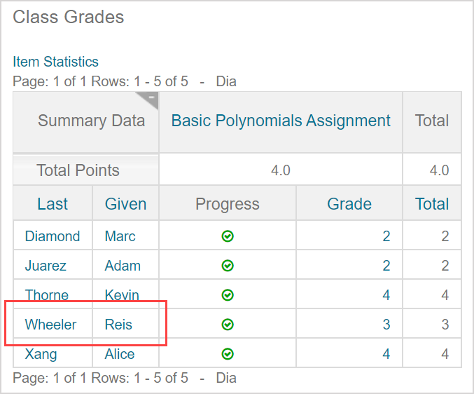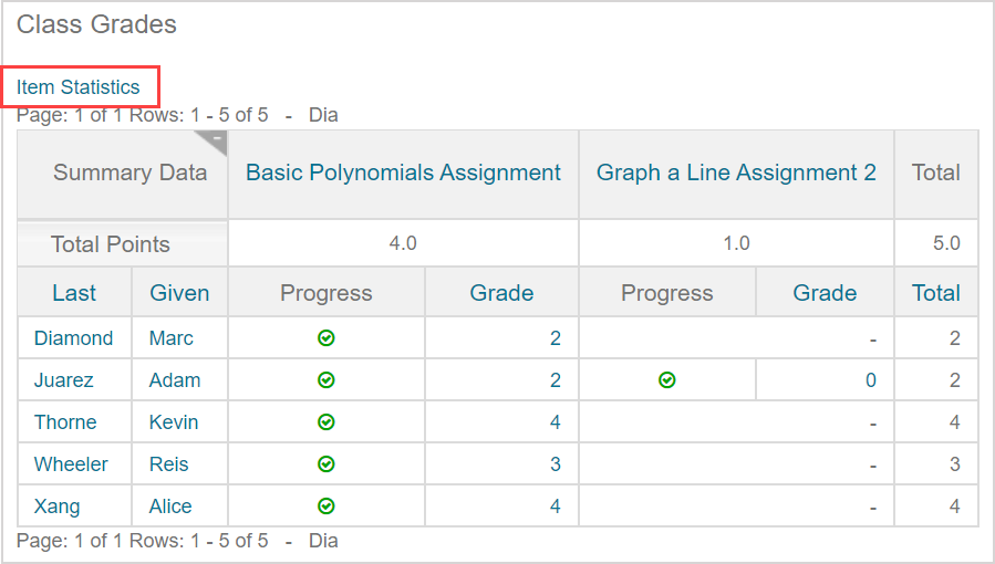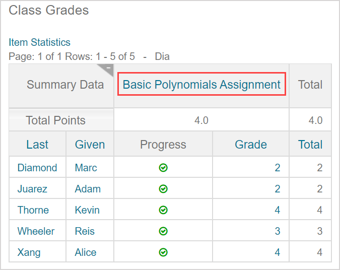 Click Item Statistics to be navigated directly to the Item Statistics page of the Gradebook.