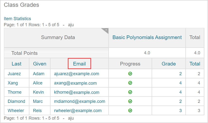 A summary of your class grades are displayed based on your Gradebook search parameters. Here's how to interpret your Gradebook search results: