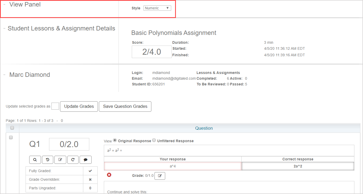 TIP: Use the Style drop-down list in the View Panel to change the grade presentation style for the (A) overall grade.