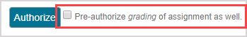A student may be attempting a proctored exam that requires authorization for activity launch, re-entry, and submission. When you authorize their launch or re-entry, you can then choose to pre-authorize their attempt submission by selecting the Pre-authorize grading of the assignment as well before continuing to step 2.