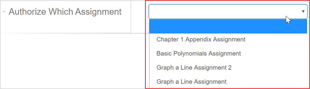 Select the name of the assignment that your authorization will affect from the Authorize Which Assignment drop-down list.
