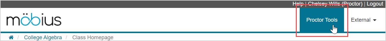 NOTE: If you're proctoring as a system proctor or class proctor, you can then click Proctor Tools on the Class Homepage.