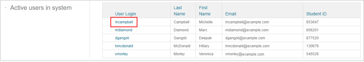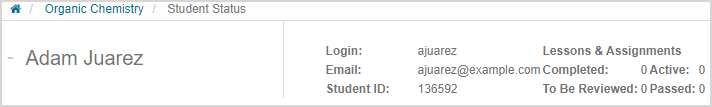 TIP: Administrators can click on a user login from the search results to view the user's student status summary for the class.