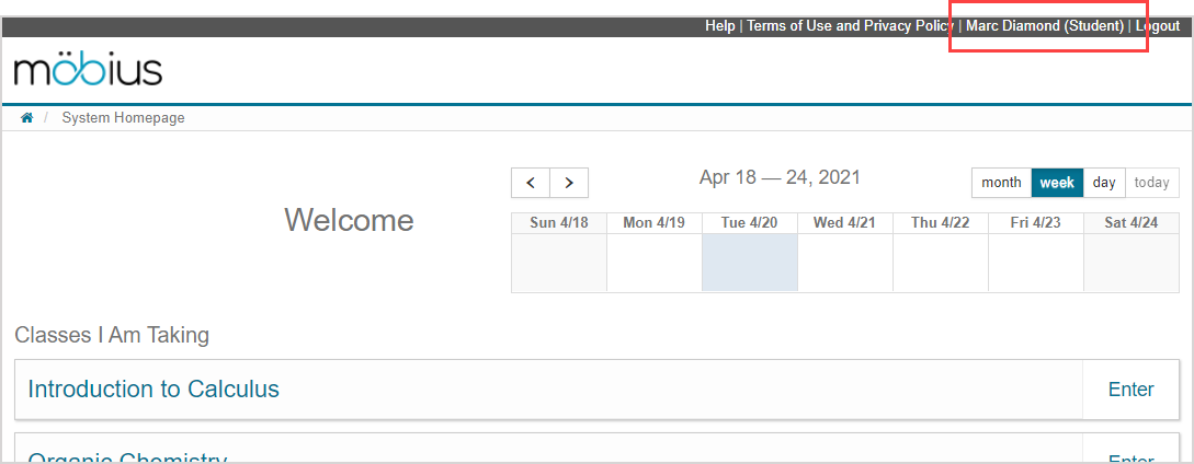 TIP: If you're still logged in to Möbius, click Back to Möbius to return to your user profile.
