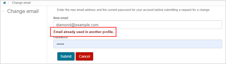 NOTE: You'll get an error if your new email address is already in use within your organization.