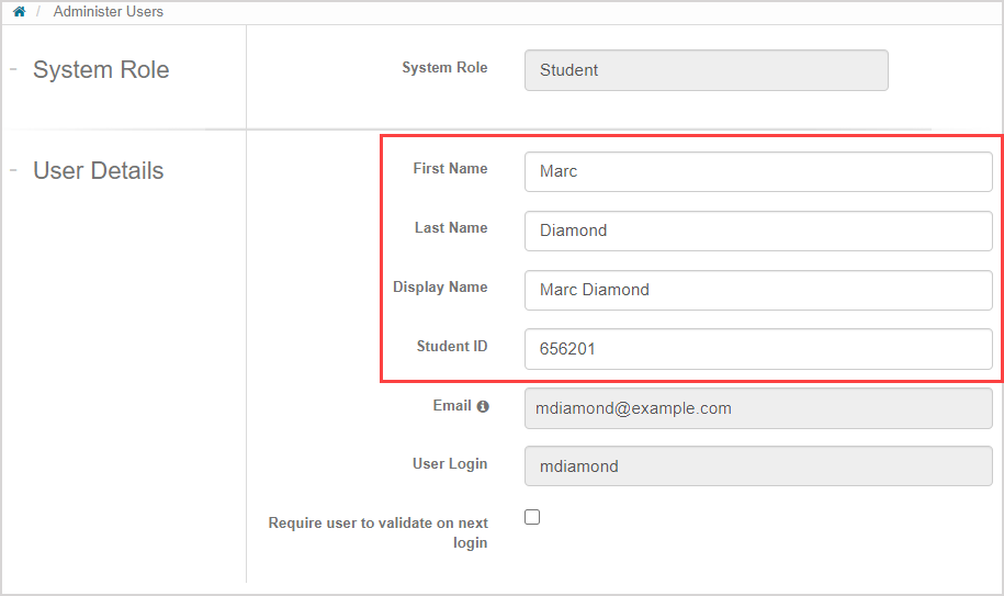 NOTE:System Role and User Login (and Global ID for administrators) can't be changed.