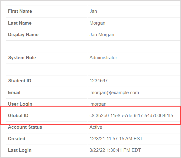 NOTE: Administrators will have an additional Global ID field in their user profile, and are able to view this value for all other users of their Möbius site. This is used for when administrators contact DigitalEd's Customer Support Team with queries about student licensing (check out Get my license using Möbius).