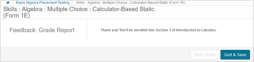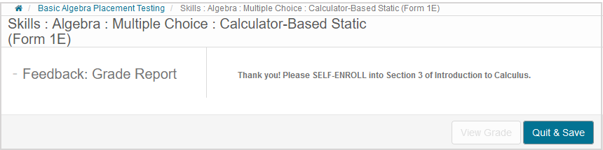 - The feedback informs you that you'll be automatically enrolled (by the Möbius system, an instructor, or a placement test coordinator) in the appropriate class(es).