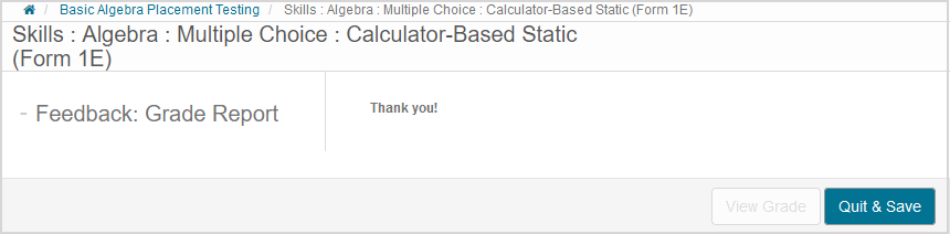 NOTE: Your placement test score may or may not be displayed on the feedback screen upon submitting your attempt. This property depends on the policies of your organization.
