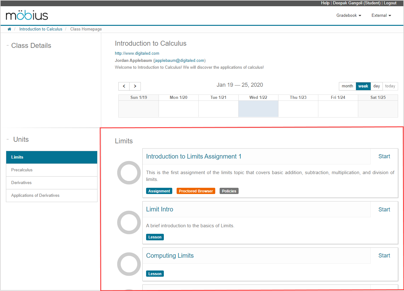 NOTE: You can only have one Möbius tab open at a time (Example — you can't have two assignments open at the same time).