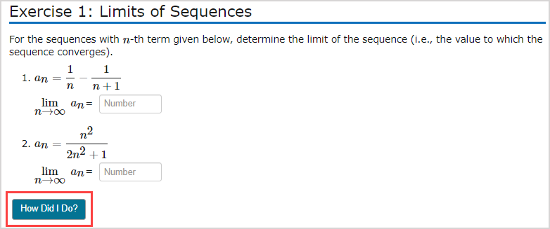 If available, click How Did I Do? to receive immediate feedback on the correctness of your entered responses.