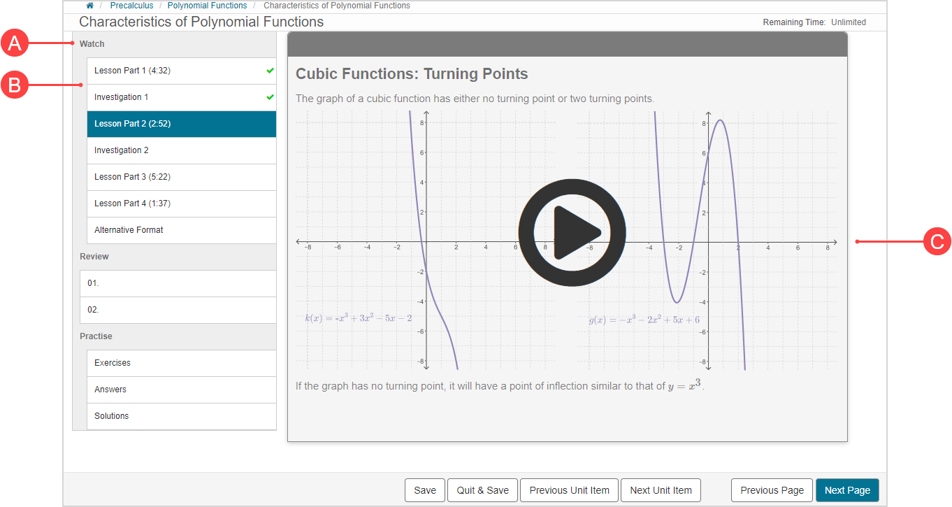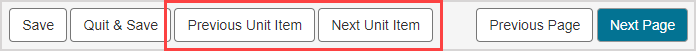 Click Previous Unit Item or Next Unit Item to navigate between activities that are contained within the unit that you're working on.