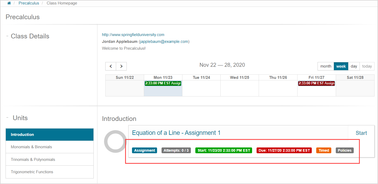 Your instructor can configure your activities to display a launch page when you click to start an activity from your Class Homepage.