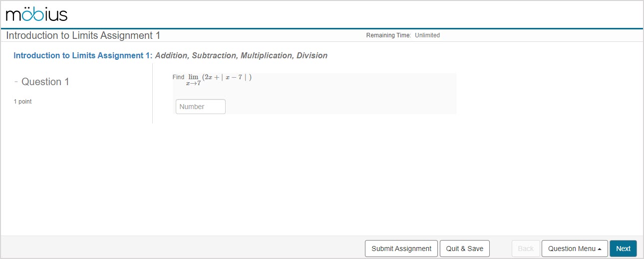 A proctored exam is one of the five main types of assignments available in Möbius. Check out Learn about the different activity types to see the other types of Möbius activities that you might encounter.
