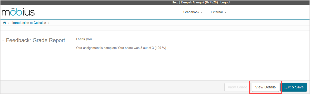 TIP: Click View Grade from the review screen to return to the grade summary screen.
