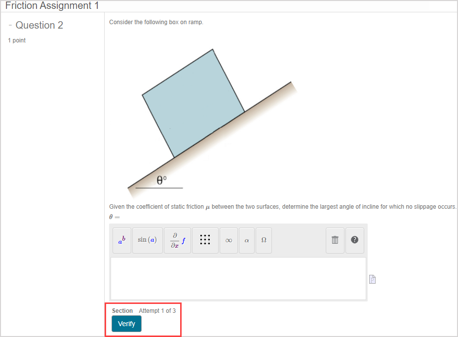 You can recognize a question as an adaptive question by the presence of the Verify button and the number of allowed attempts.