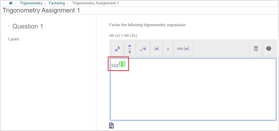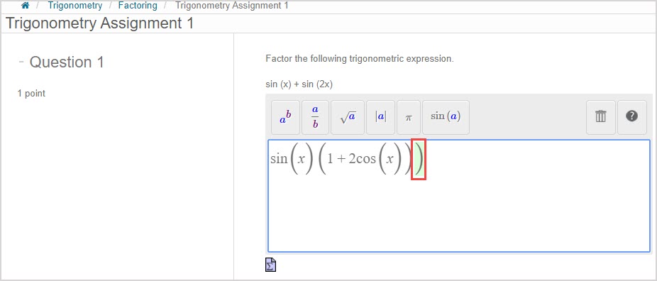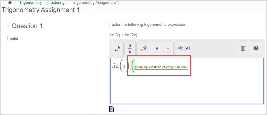 The Syntax Checker automatically reviews all responses that are manually entered into the Equation Editor's entry field.