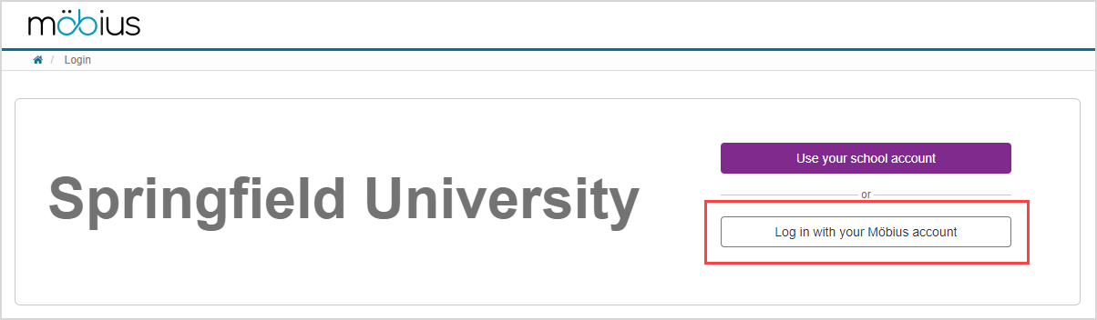 You can log in to Möbius directly (Example — you already have existing Möbius login credentials or your organization hasn't enabled single sign-on).