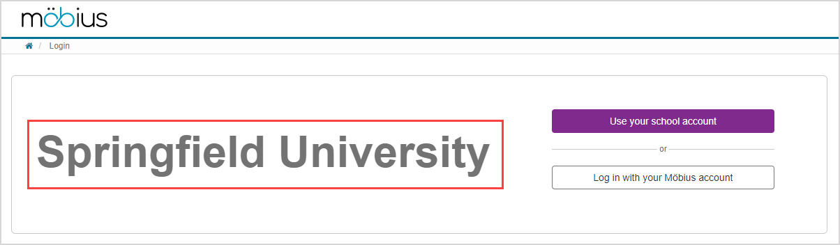 NOTE: Your organization will automatically log you in to Möbius through single sign-on if this feature is enabled. You'll know if you can use single sign-on to log in to Möbius if you're provided the option to use your school account to log in: