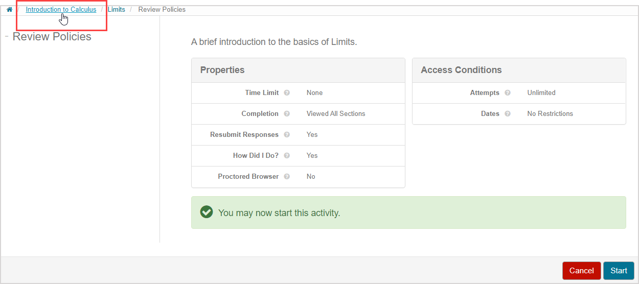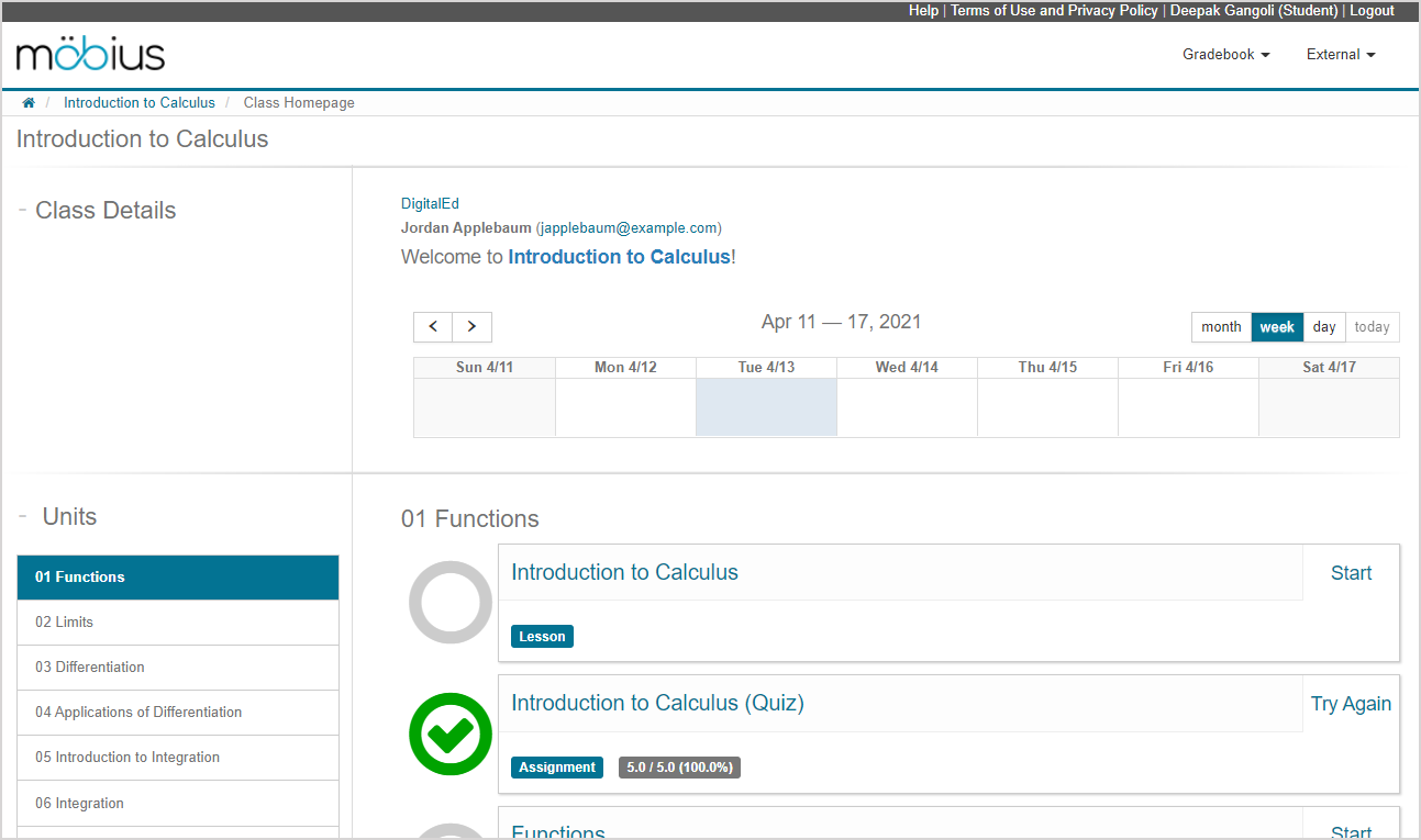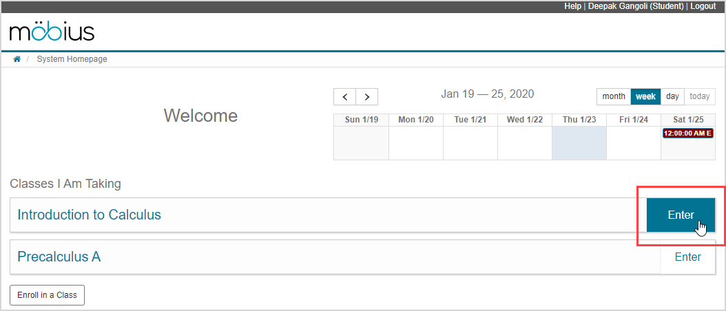 TIP: You can return to the Class Homepage from almost anywhere within your class by clicking the class name in the Möbius breadcrumbs.