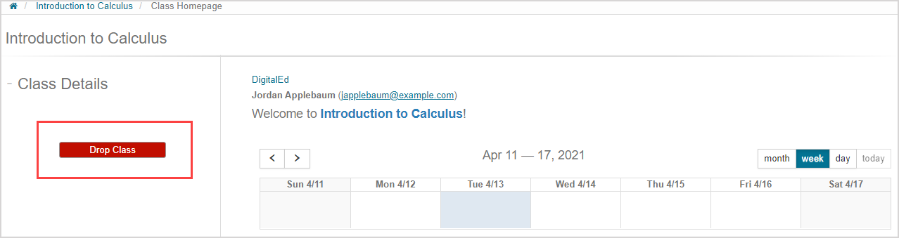 NOTE: If your instructor has enabled the setting to allow you to drop the class, you'll see a Drop Class button in your Class Details pane. Check out Drop a class.